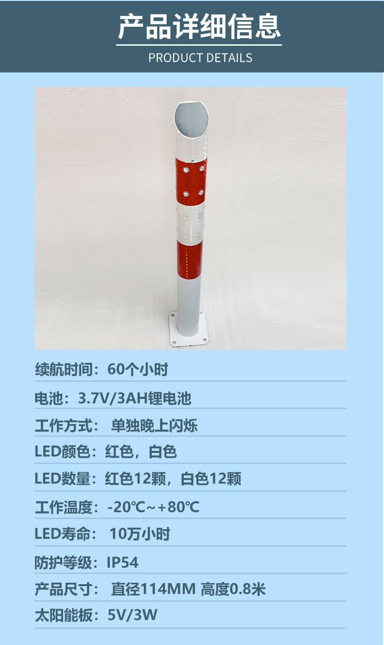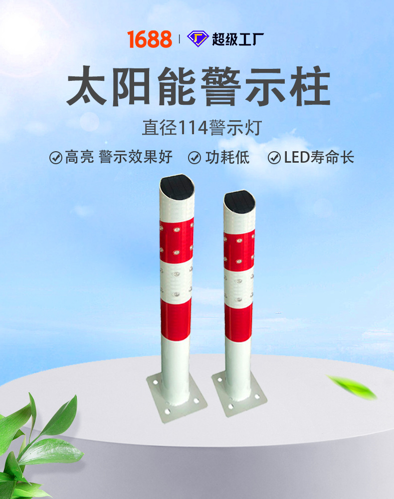 태양광 경고 기둥 LED 교통 진입로 표지등 도로 안전 지름 114 경고 기둥 표지판