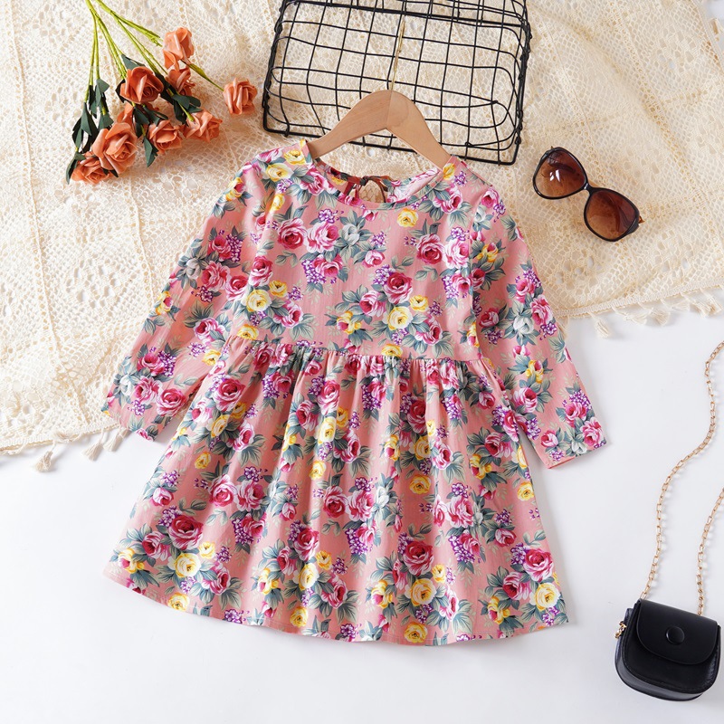 어린이 봄과 가을 새로운 여아 한국식 긴팔 프린트 원피스 아동용 긴팔 꽃무늬 아동복 원피스