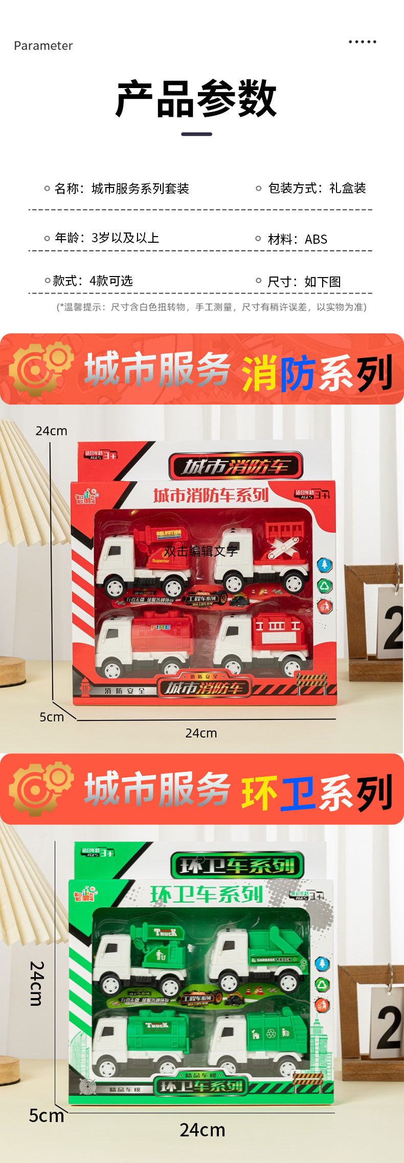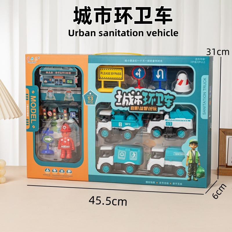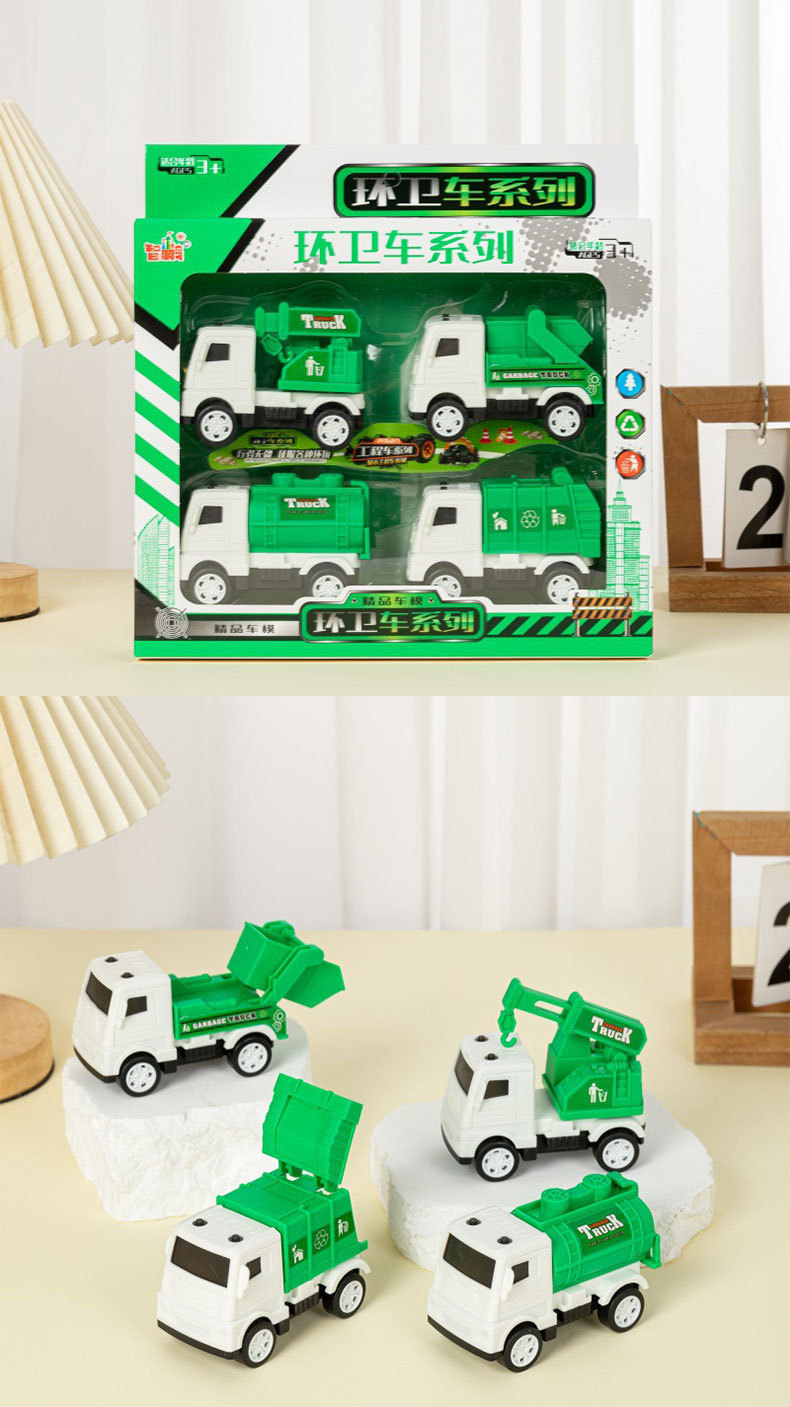 어린이 관성 공학 차량 모델 장난감 놀이 집 관성 위생 차량 장난감 세트 유치원 제조 업체 도매스토어 가기
