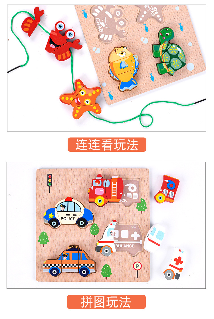 나무 빌딩 블록 Che Le String 로프 스테레오 직소 퍼즐 0.2kg 유아 교육 퍼즐 토링 퍼즐 장난감스토어 가기