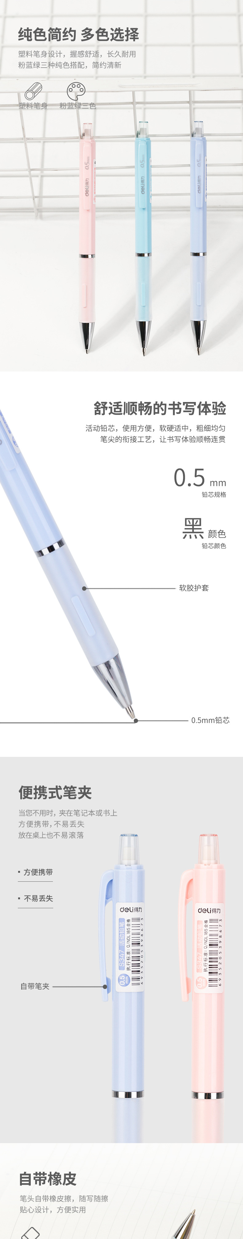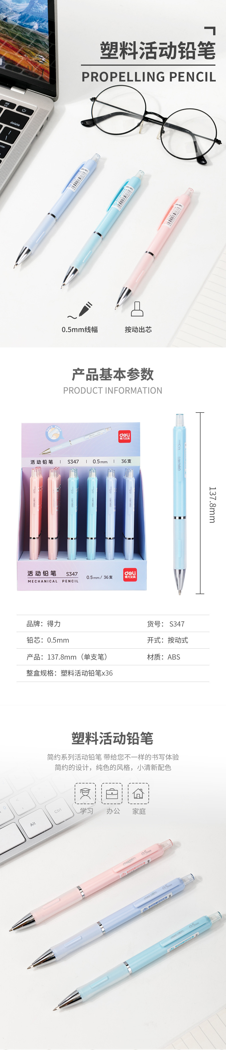 델리 델리 S347/S348 샤프 펜슬 0.5/0.7mm 연필 코어 학생 문구 활동 펜슬스토어 가기