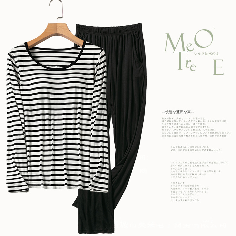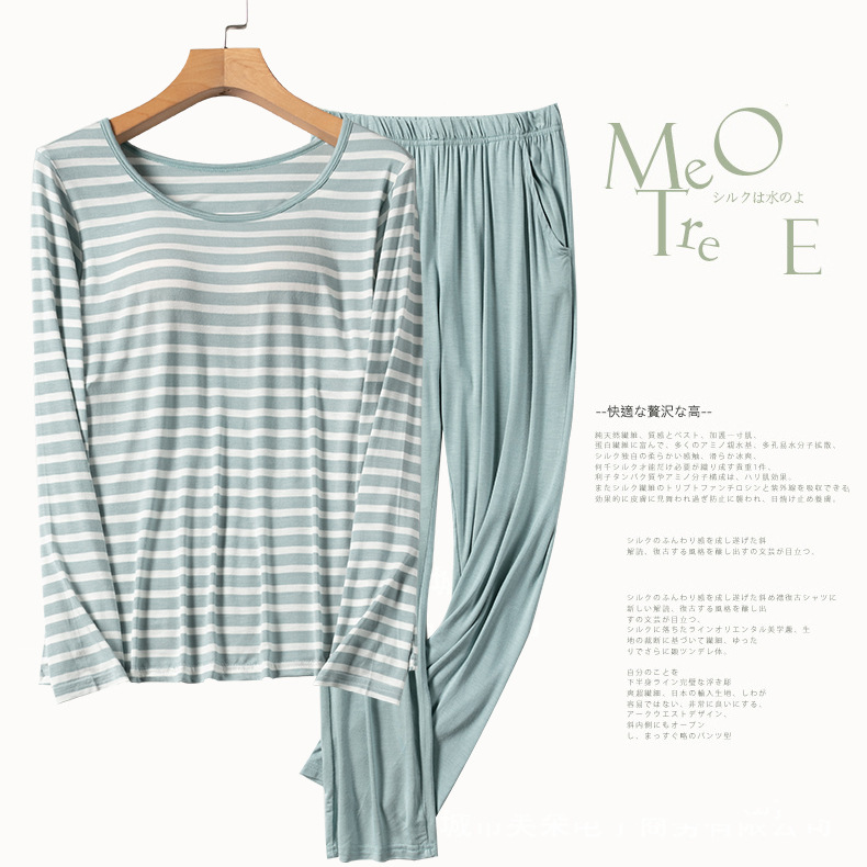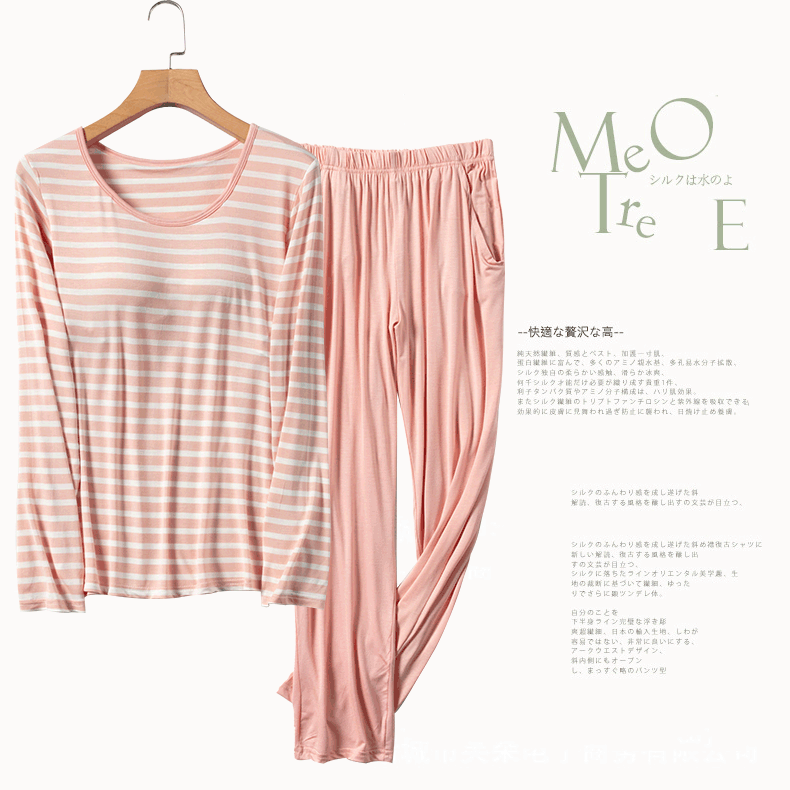 여성용 모달 잠옷, 홈웨어 투피스 세트, 가슴 패드가 있는 여성용 스트라이프 긴팔 바지, 통기성 도매