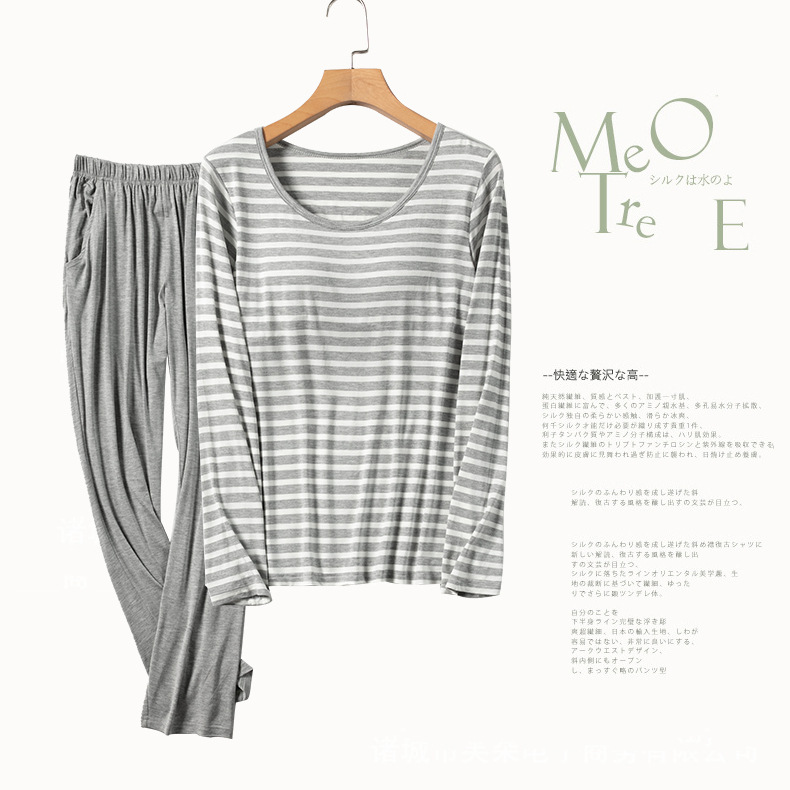 여성용 모달 잠옷, 홈웨어 투피스 세트, 가슴 패드가 있는 여성용 스트라이프 긴팔 바지, 통기성 도매스토어 가기
