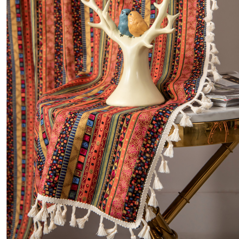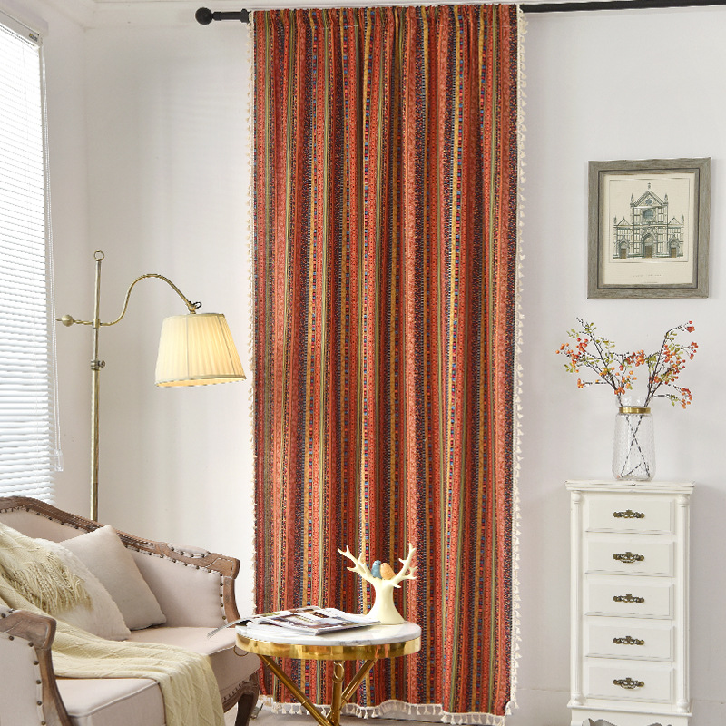 烫金红条纹窗帘