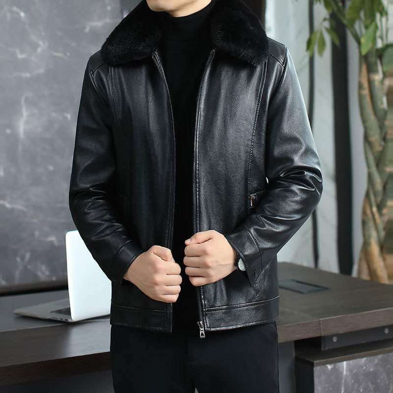 중년 가죽 남성 코트 새로운 모피 한 아버지가 설치 puleather 재킷 및 벨벳 두꺼운 제조 업체 도매스토어 가기