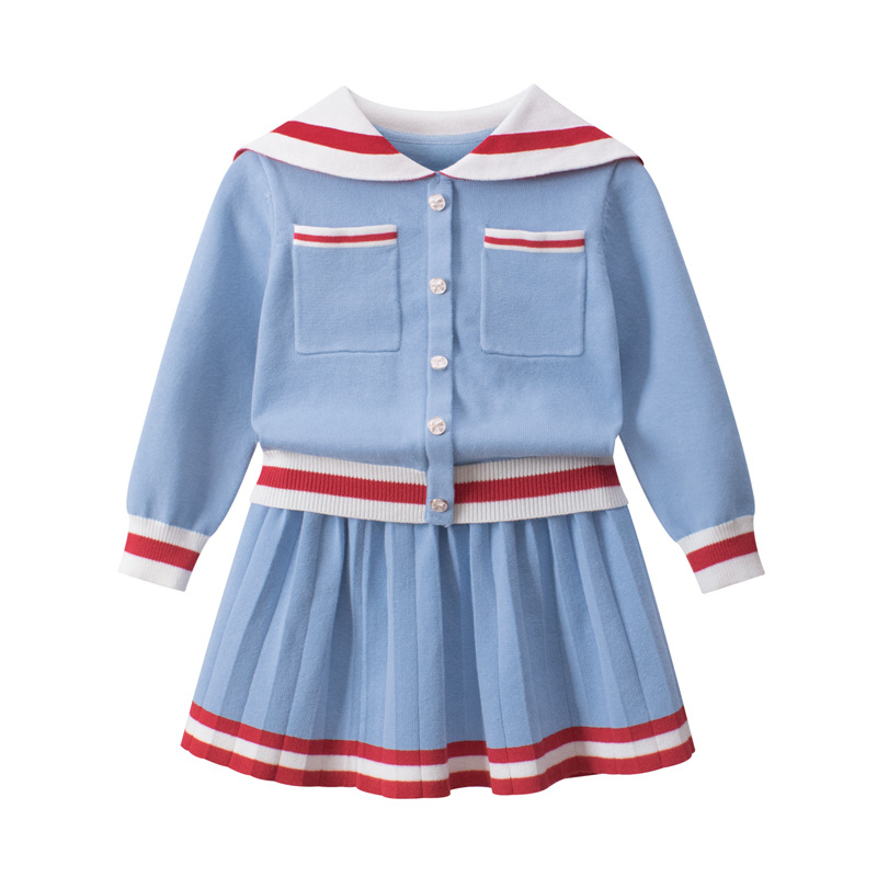 2024 가을 새로운 여자 패션 한국 스타일 니트 스웨터 도매 한국 스타일 짧은 치마 스웨터 세트 드롭 배송