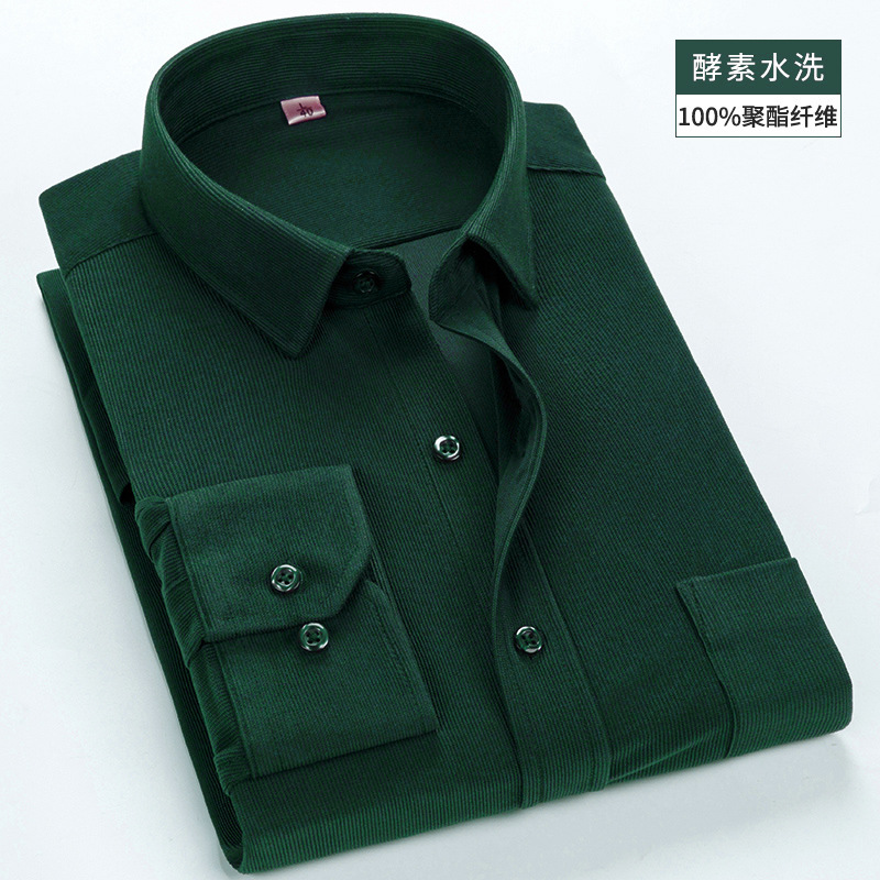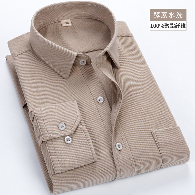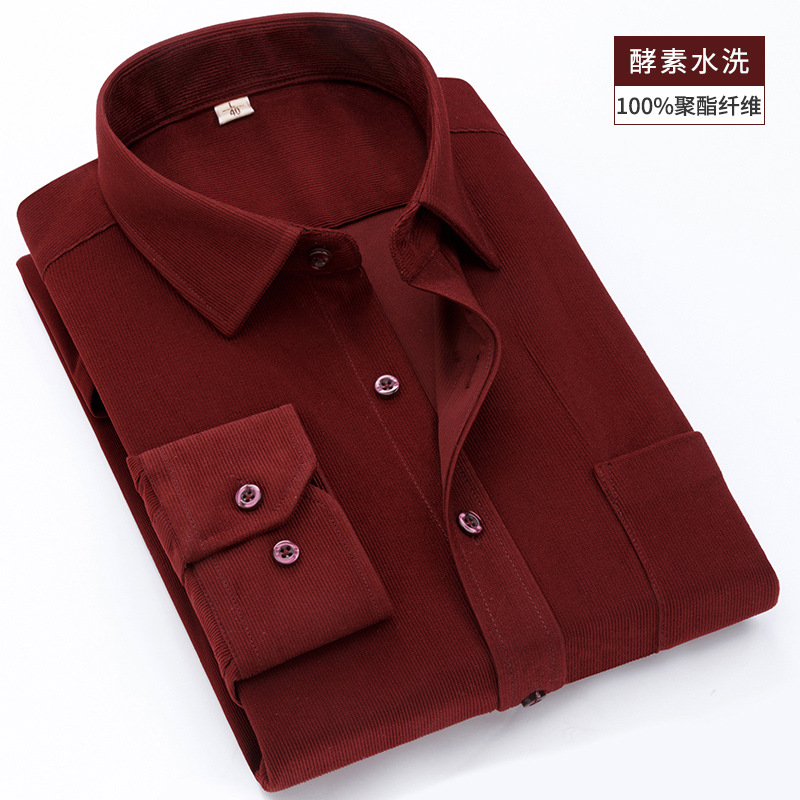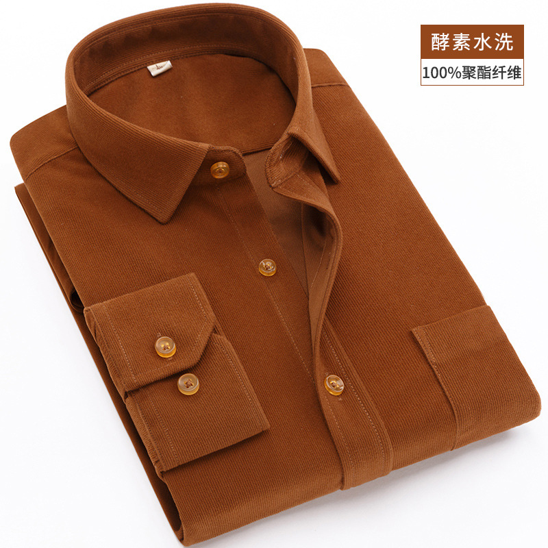 가을 중년과 노인 코듀로이 긴 소매 셔츠 남자의 두꺼운 아빠 느슨한 단색 셔츠 재고 도매스토어 가기