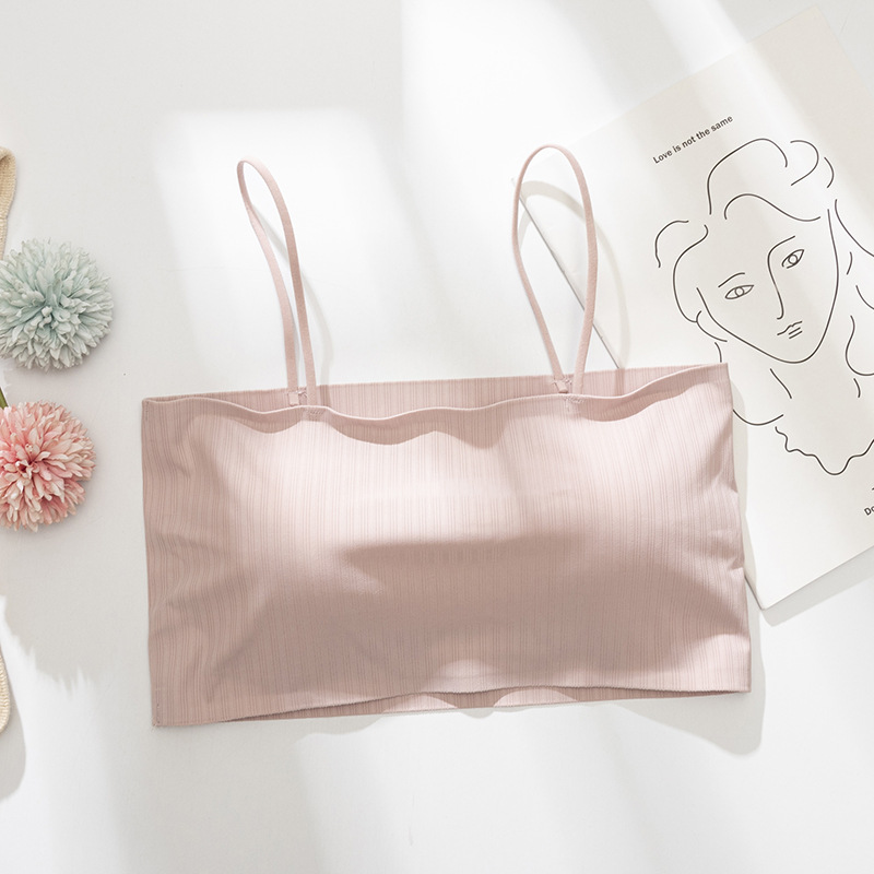 여학생을 위한 여름 아이스 실크 튜브탑 속옷, 아름다운 등, 가슴 감싸기, 고등학생, 중학생, 노출 방지 캐미솔, 얇은 스타일