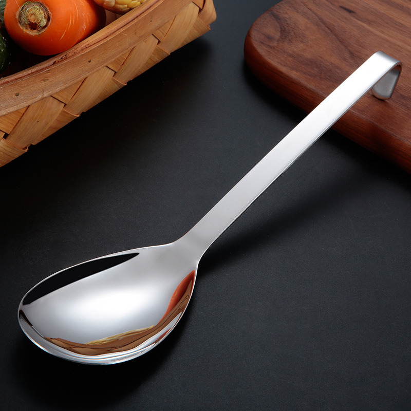 201 크리 에이 티브 스테인레스 스틸 스푼 후크가있는 두꺼운 긴 손잡이 스푼 학생 레스토랑 믹싱 스푼 제조 업체 도매