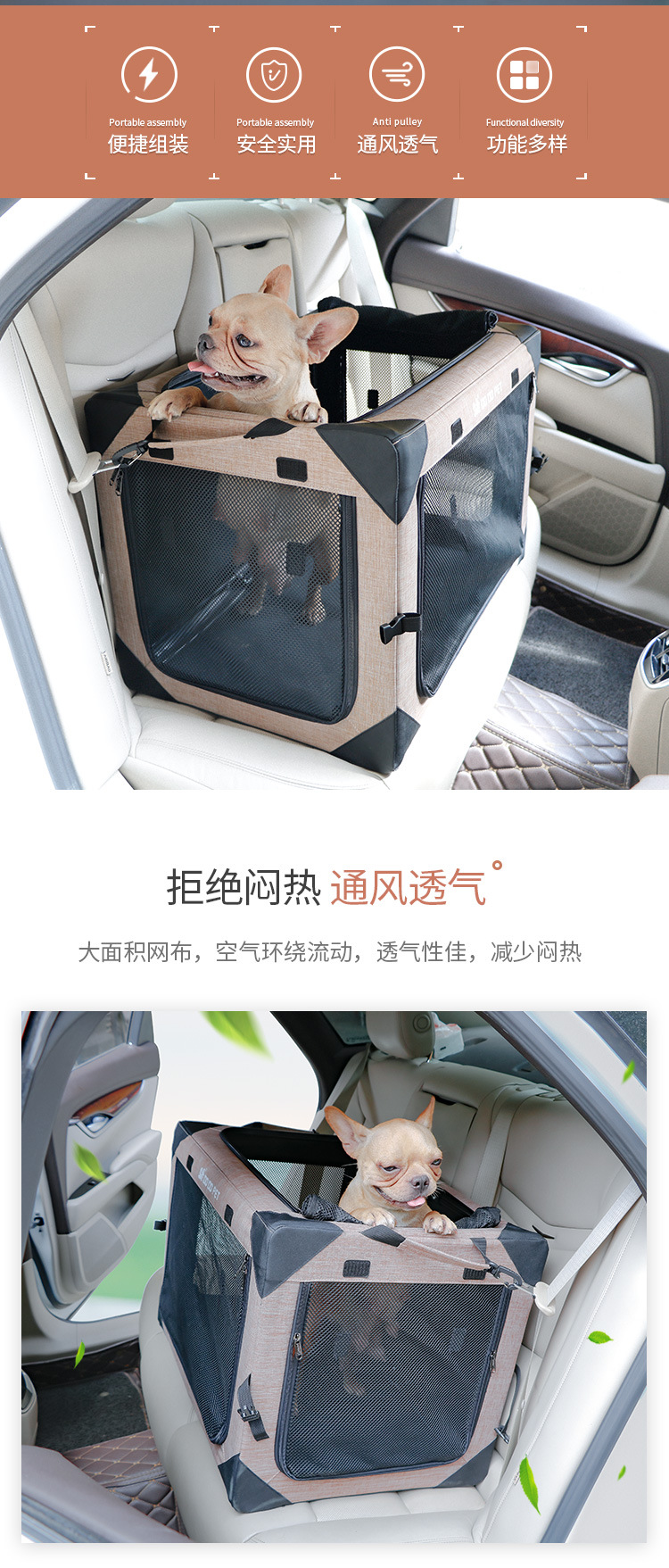 DODOPET 개 자동차 케이지 대형 중형 개 자동차 개 케이지 앞뒤 열 고양이 둥지 애완 동물 케이지 접이식