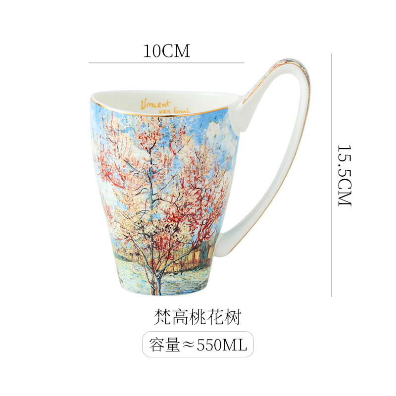 • 높은 핸들 컵 반 고흐 핑크 복숭아 꽃 나무