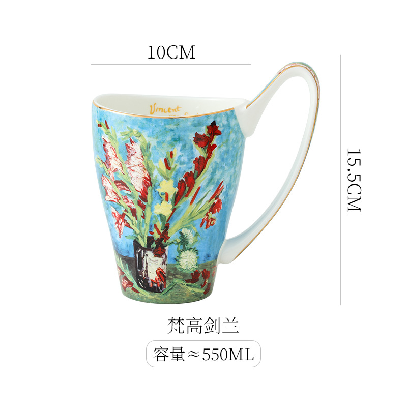 반 고흐 모네 유화 본 중국 머그 가정용 북유럽 커플 컵 대용량 크리에이티브 심플 커피 컵 물 컵
