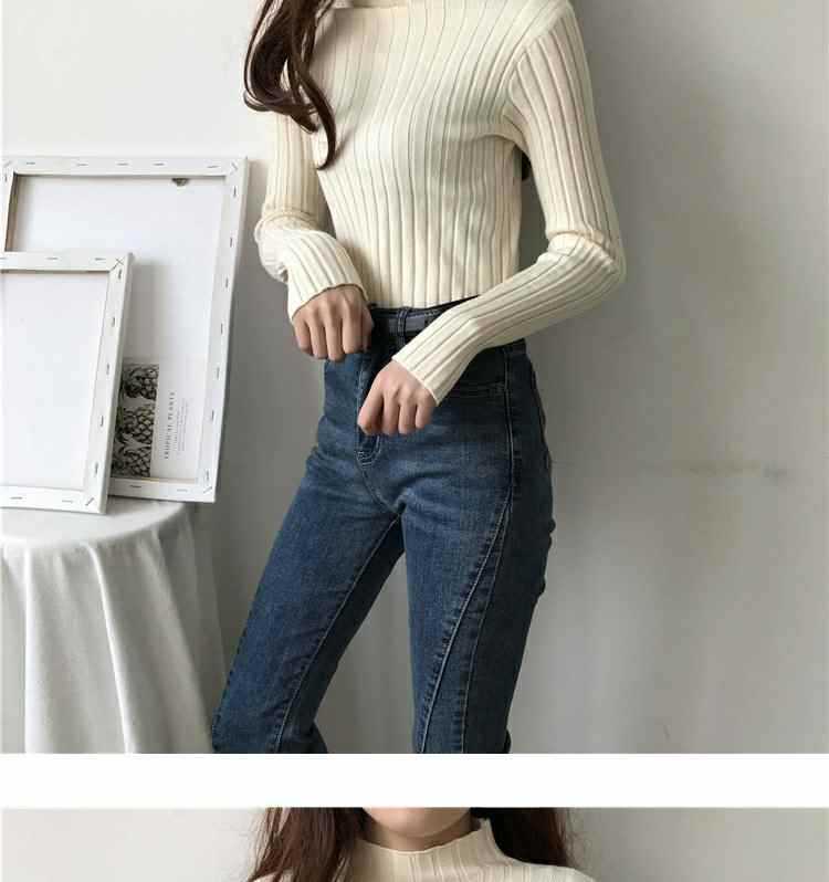 2025년 신상 가을 겨울 스웨터 반터틀넥 반니트 슬림핏 골지 니트 베이스 레이어 탑 유행 패션 여성복
