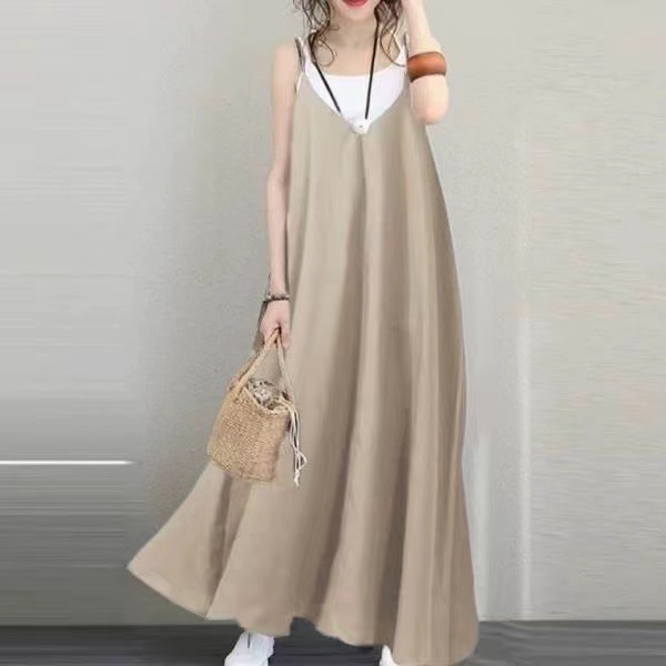 2020 여성 캐주얼 느슨한 솔리드 원피스 V-넥 등이없는 섹시한 긴 원피스 민소매 여성 파티 가운