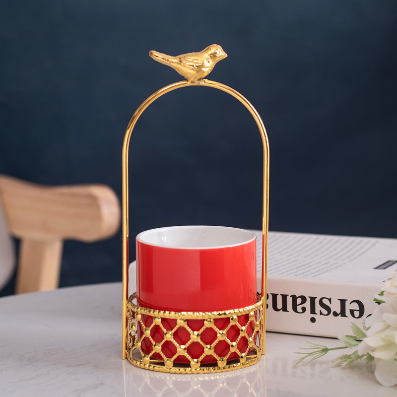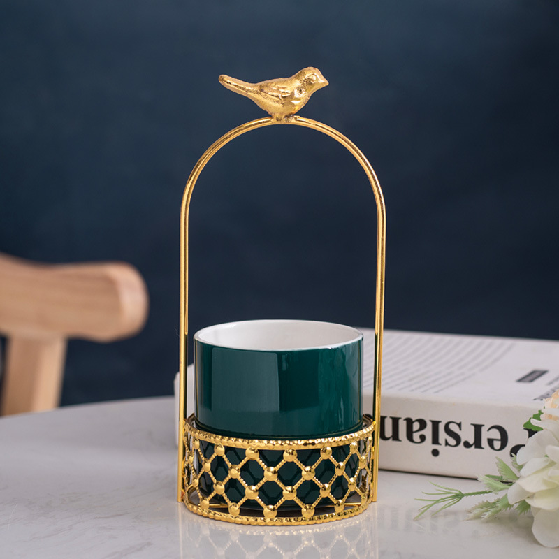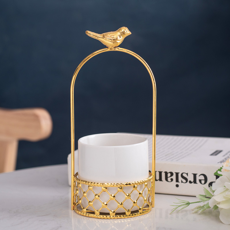 금속 꽃바구니, 금도금 철제, 세라믹 포장, 꽃꽂이, 꽃꽂이대, 심플하고 고급스러운 장식품, 도매, 가정용, 명절 선물