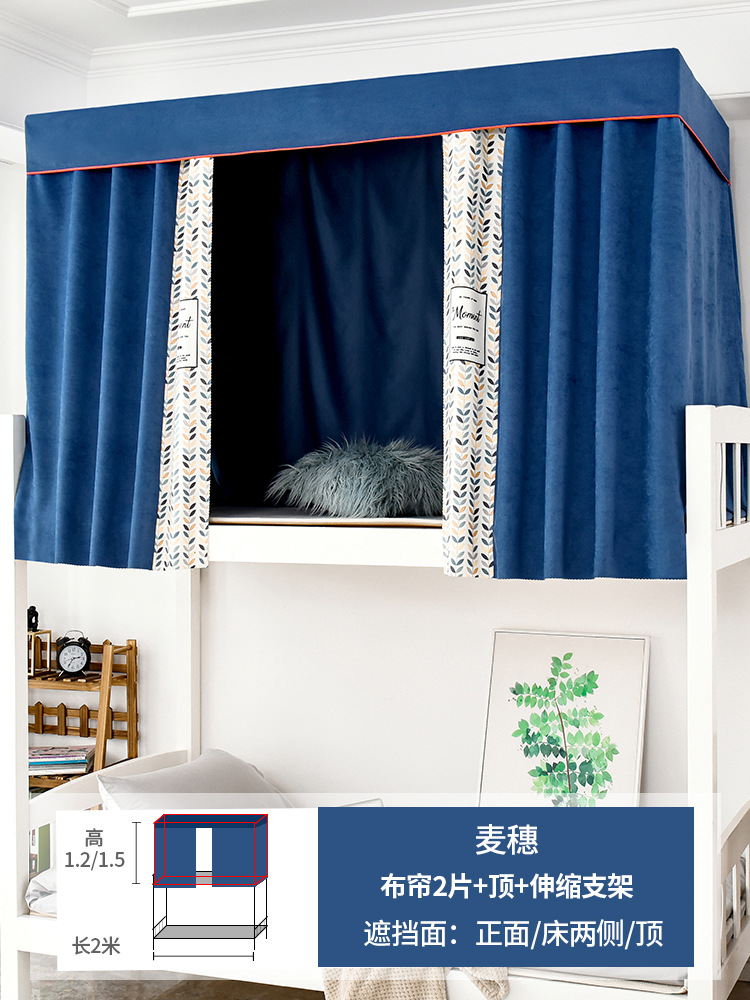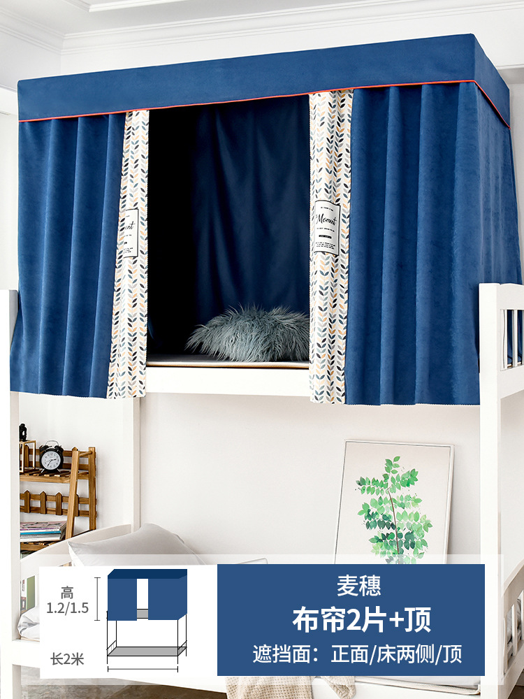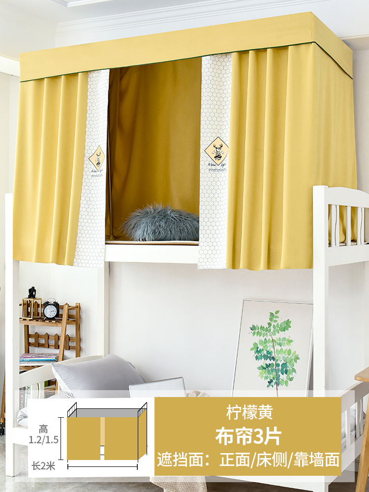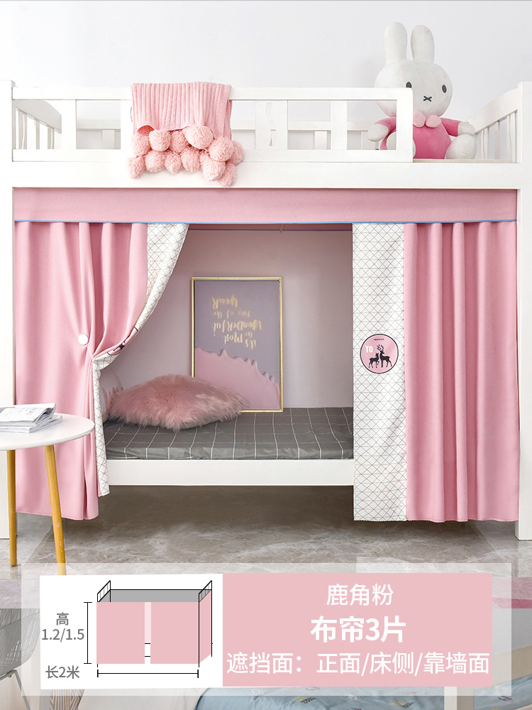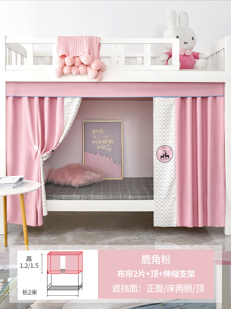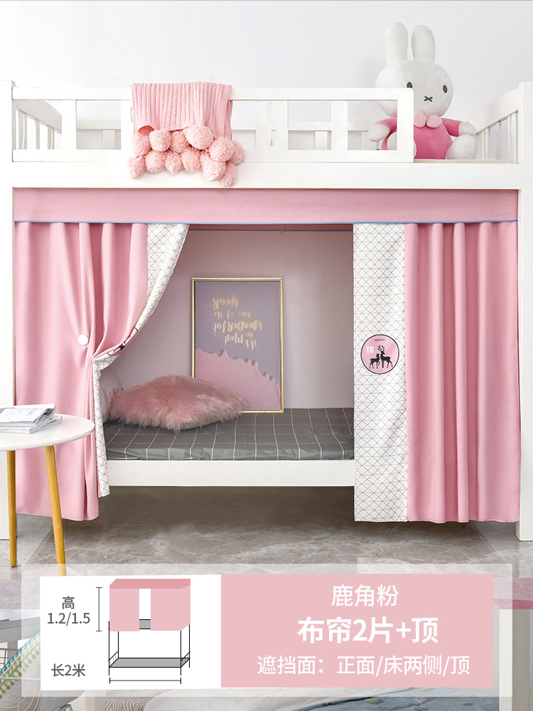 학생 기숙사 침대 커튼 모기장 일체형 상단 및 하단 강력한 차광 천 여성 공주 커튼 요정 침실 접착식