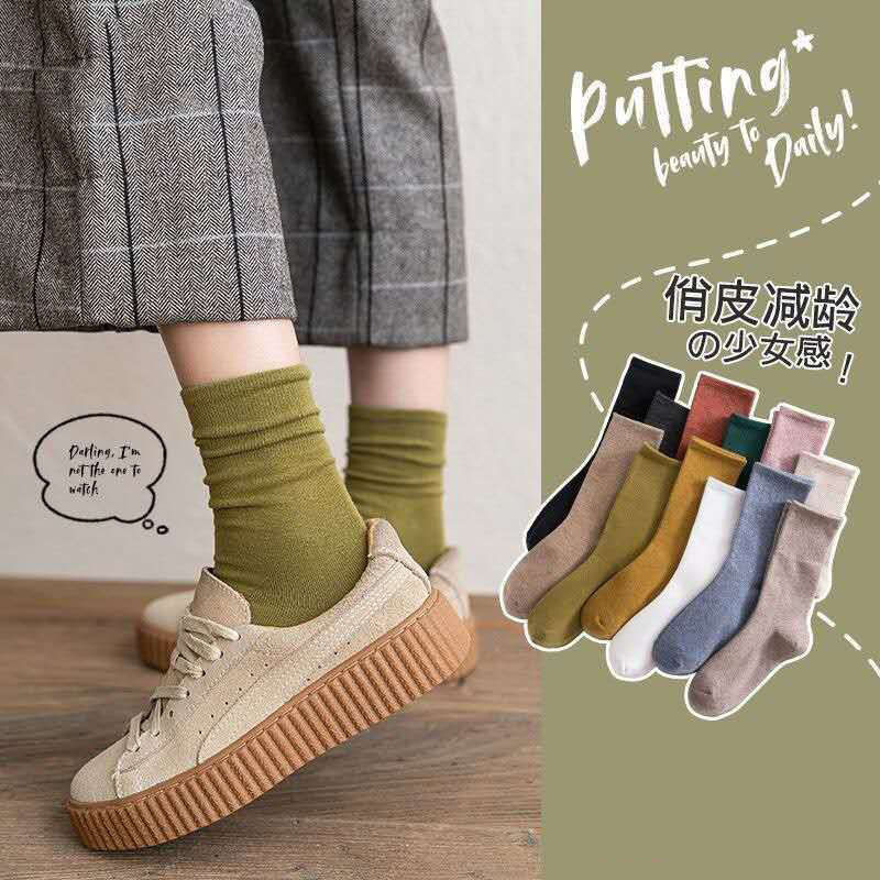 가을과 겨울 새로운 일본 단색 여성용 더미 양말 튜브 양말 흡연 여성 양말 제조업체 직접 공급스토어 가기
