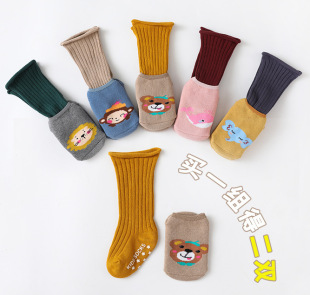 아기 양말 봄과 가을 새로운 빗질면 아기 양말 일본식 단색 느슨한 양말 어린이 신생아 양말스토어 가기