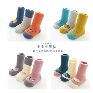 아기 양말 봄과 가을 새로운 빗질면 아기 양말 일본식 단색 느슨한 양말 어린이 신생아 양말