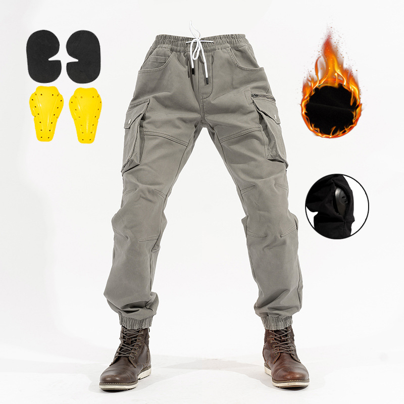 오토바이 사이클링 바지 따뜻한 겨울 기모 두꺼운 군중 바지 느슨한 허리 슬림 핏 바지 남성과 여성을위한 멀티 포켓스토어 가기