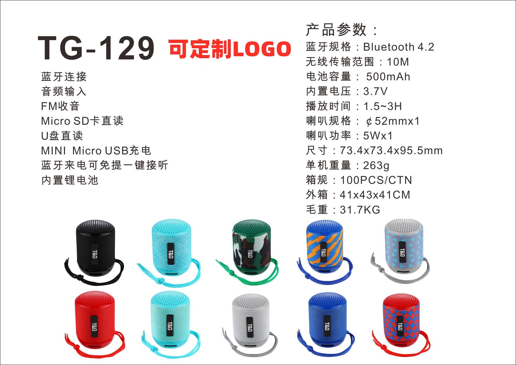 새로운 크로스 보더 TG129 블루투스 스피커 카드 U 디스크 휴대용 소형 오디오 선물 서브 우퍼 블루투스 스피커