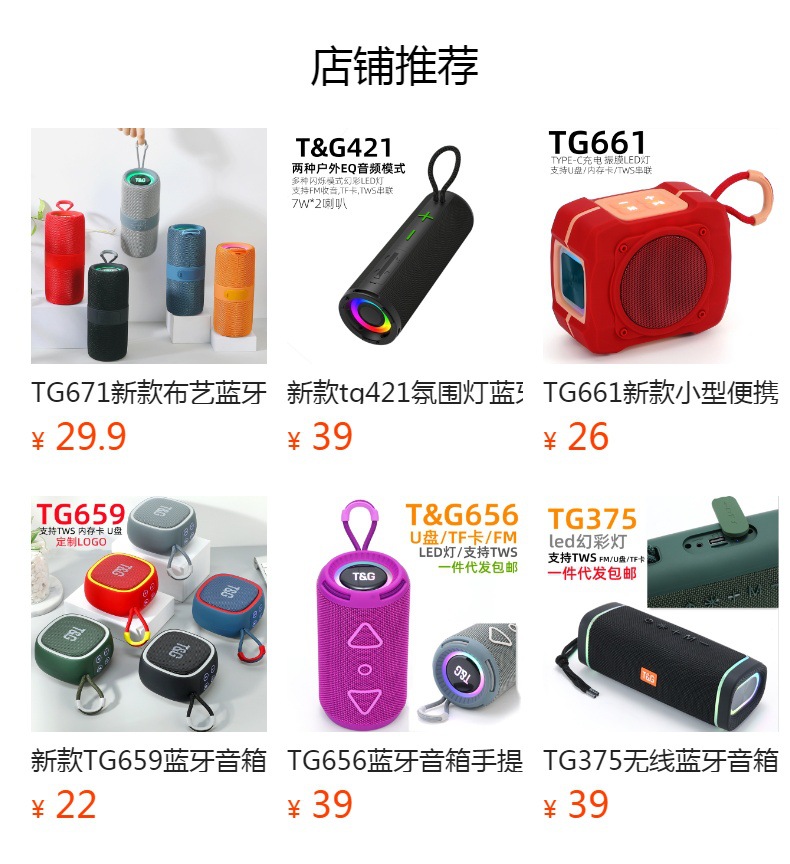 새로운 크로스 보더 TG129 블루투스 스피커 카드 U 디스크 휴대용 소형 오디오 선물 서브 우퍼 블루투스 스피커스토어 가기