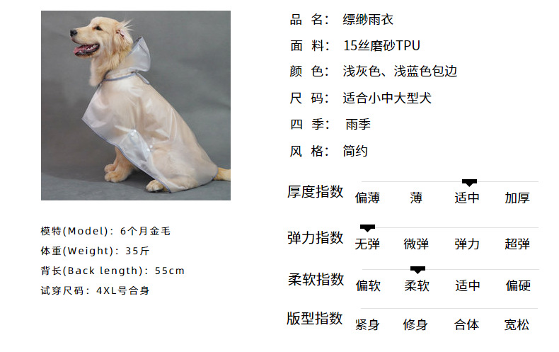 투명 TPU 강아지 비옷 대형견 알래스카견 옷 대형견 애완동물 의류 제조업체 방수스토어 가기