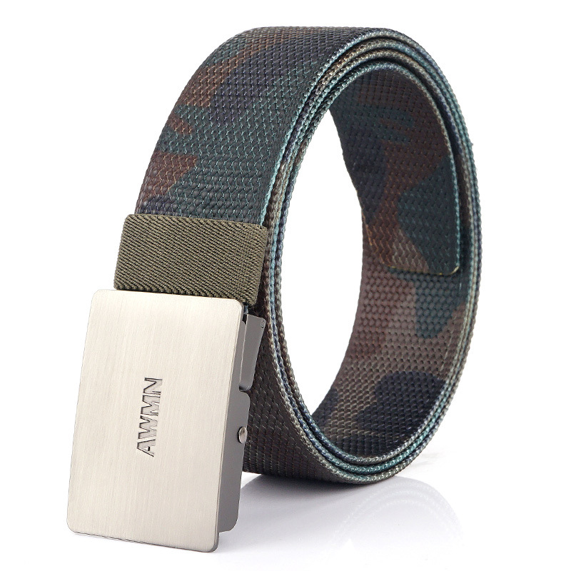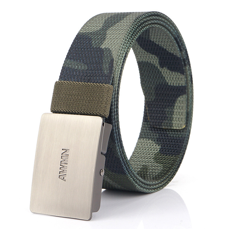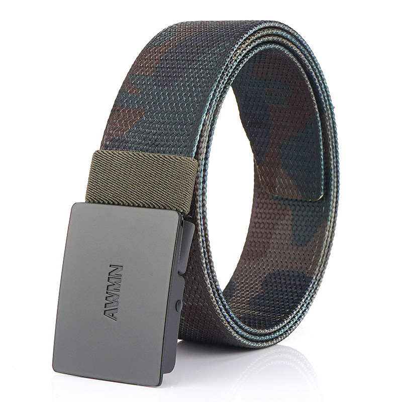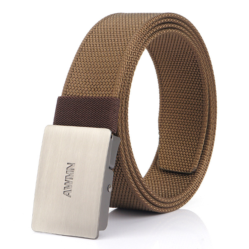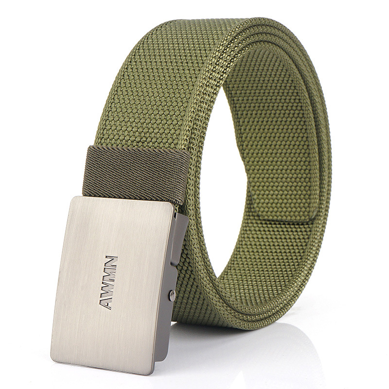 2020 New AWMN 남성용 스트레치 나일론 캔버스 벨트 모든 매치 작업 청바지 캐주얼 버클 벨트스토어 가기