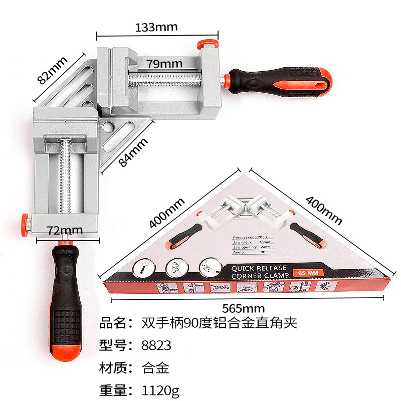 제조업체 특가 단일/이중 핸들 90도 직각 클램프 알루미늄 평면 유리 공구 클램프 목공 클램프