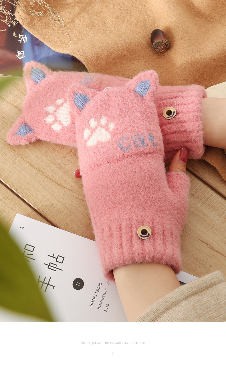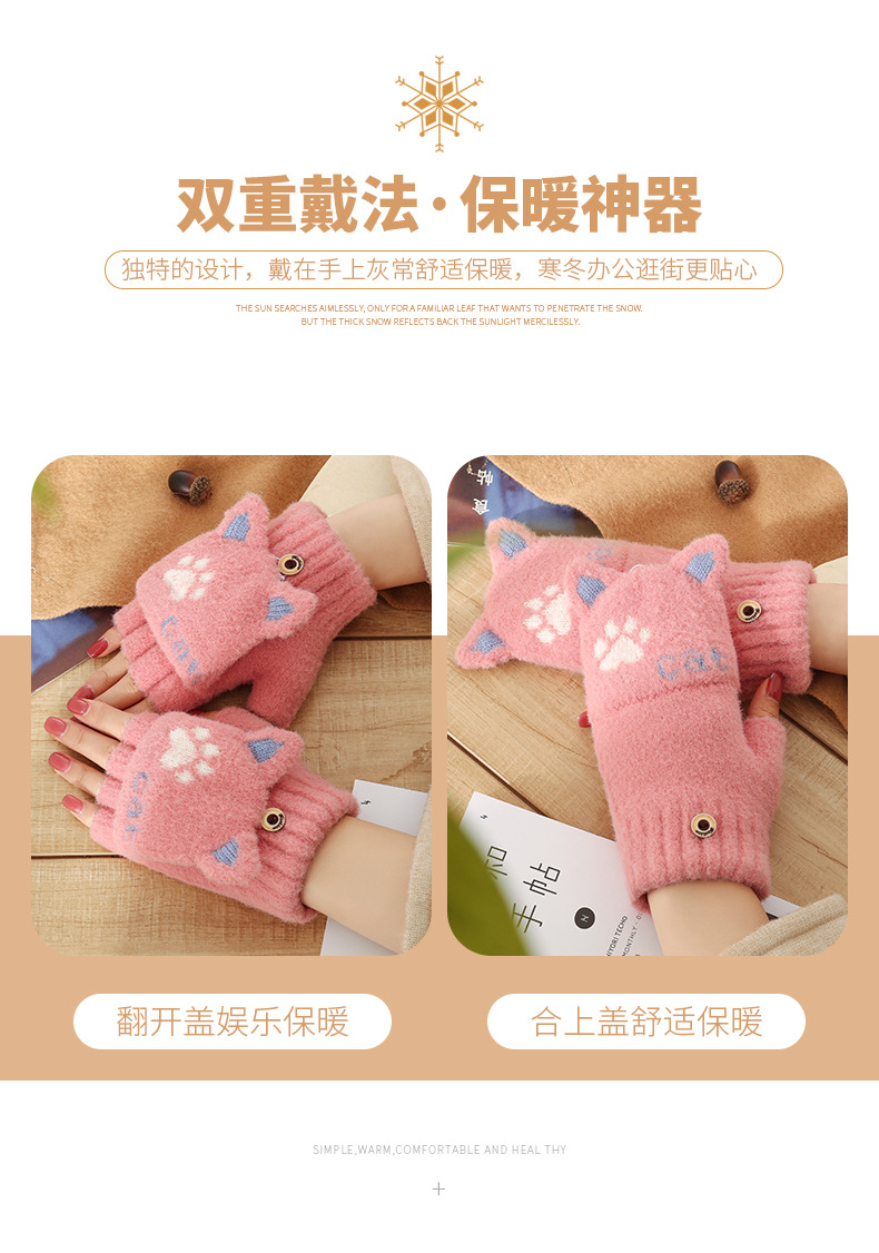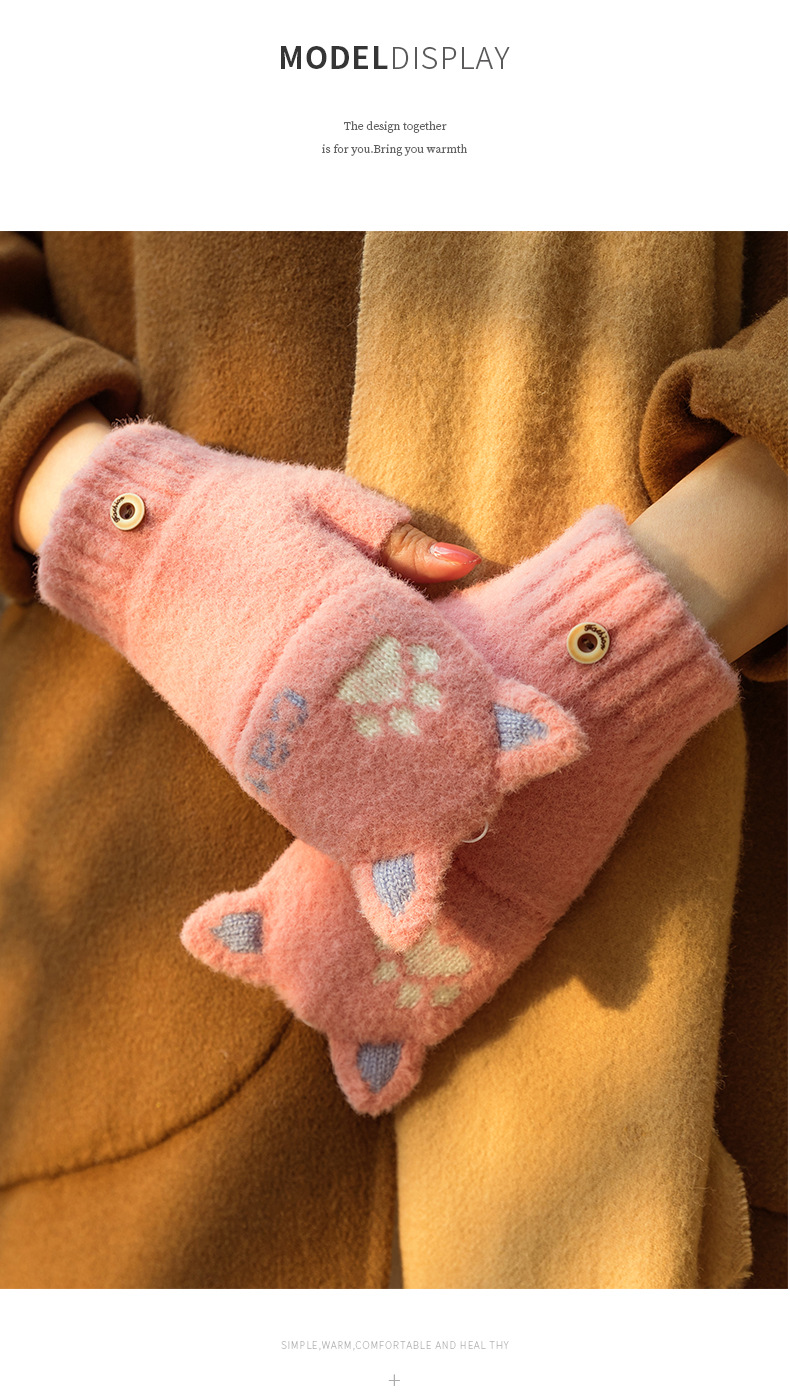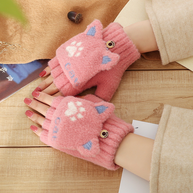 학생용 장갑 여성용 겨울 반장갑 니트 손가락 없는 장갑 플리스 안감 두꺼운 방한 보온 손가락 노출형 보온 두꺼운 장갑
