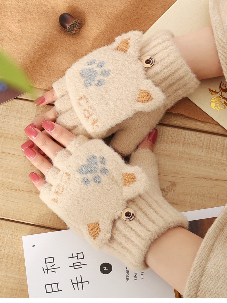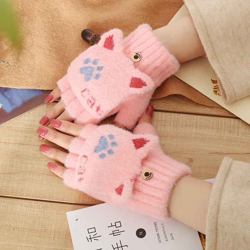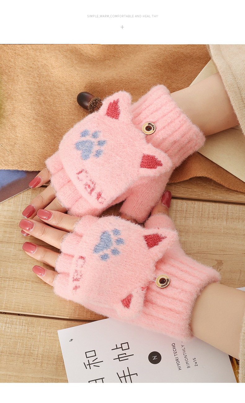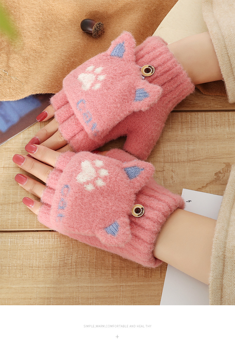 학생용 장갑 여성용 겨울 반장갑 니트 손가락 없는 장갑 플리스 안감 두꺼운 방한 보온 손가락 노출형 보온 두꺼운 장갑