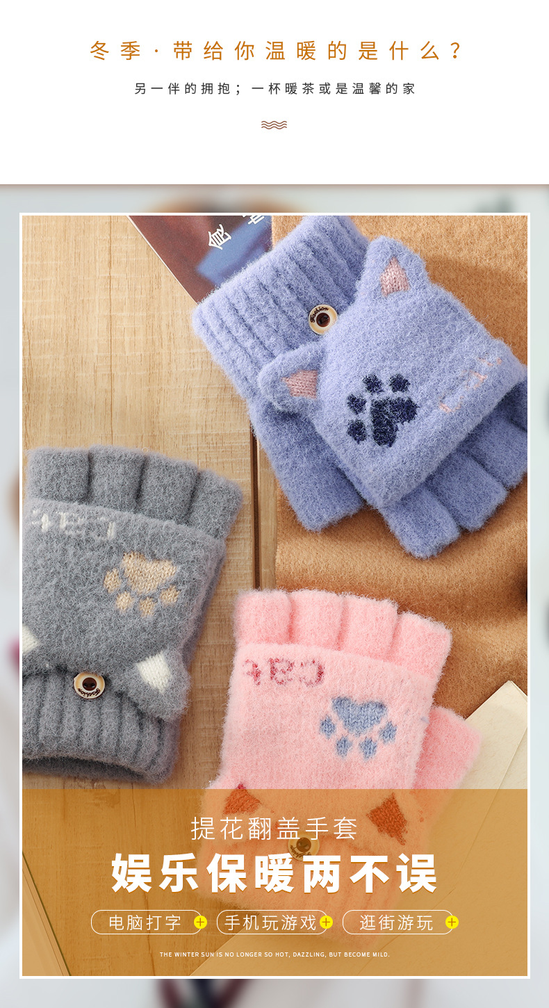 학생용 장갑 여성용 겨울 반장갑 니트 손가락 없는 장갑 플리스 안감 두꺼운 방한 보온 손가락 노출형 보온 두꺼운 장갑스토어 가기