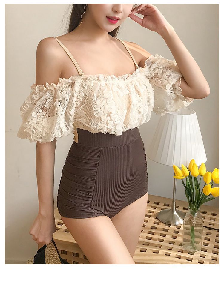 한국 스타일 스타일 레이스 섹시한 원피스 배꼽 덮기 슬림 비키니 작은 가슴 푸시 업 페어리 스타일 보수적 인 수영복
