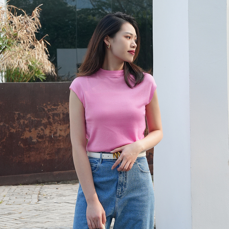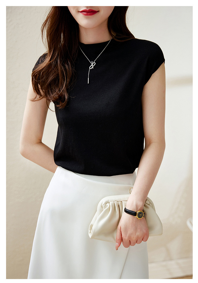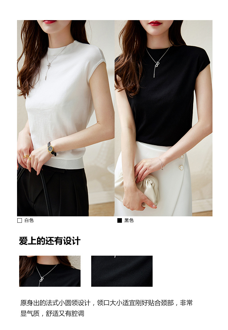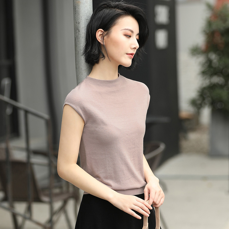 니트 반팔 여름 얇은 여성용 풀오버 스웨터 Tencel 탑 민소매 슬림핏 슬리밍 베이스 스웨터스토어 가기