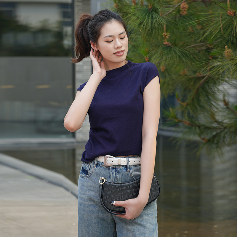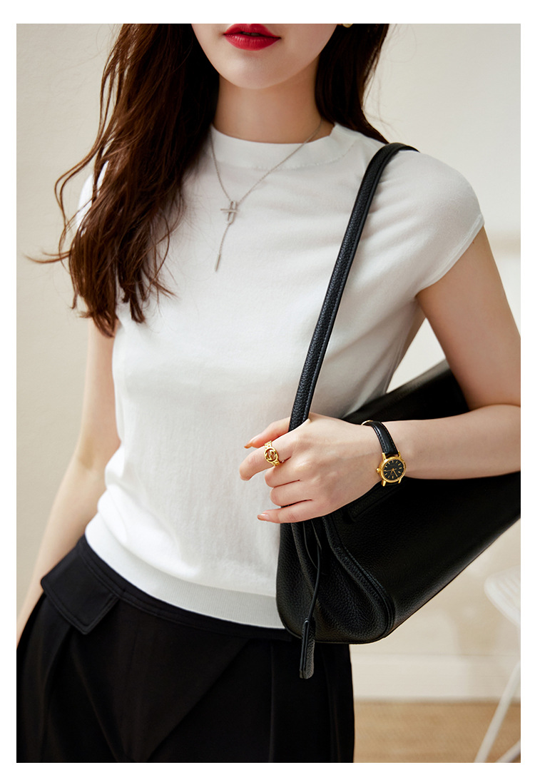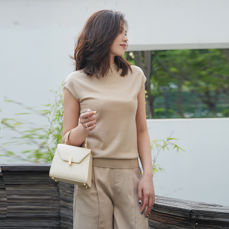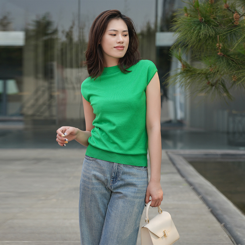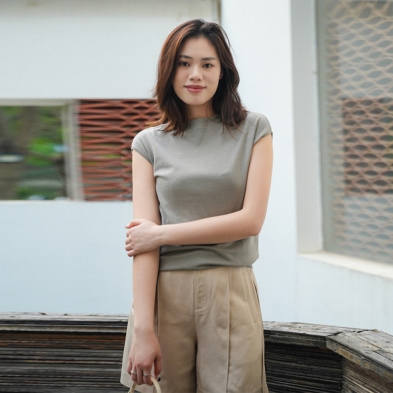 니트 반팔 여름 얇은 여성용 풀오버 스웨터 Tencel 탑 민소매 슬림핏 슬리밍 베이스 스웨터스토어 가기