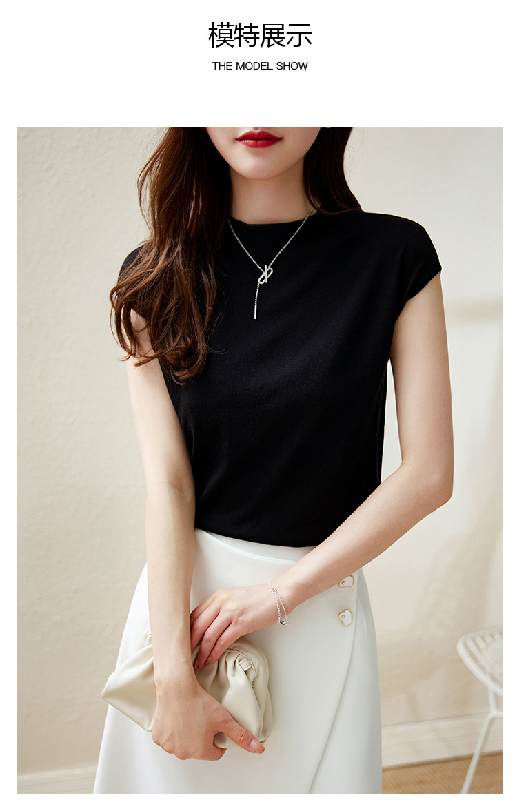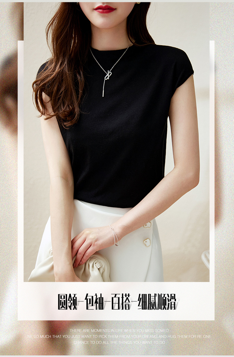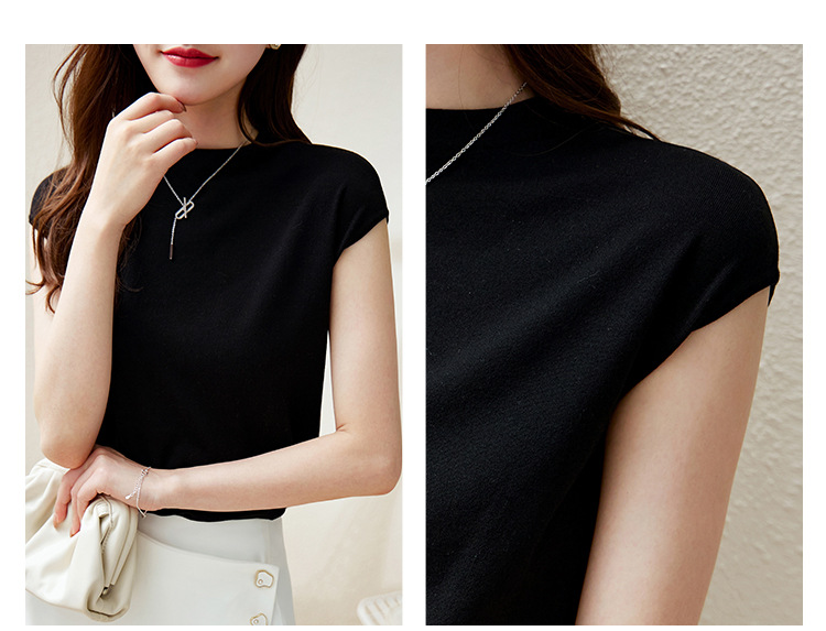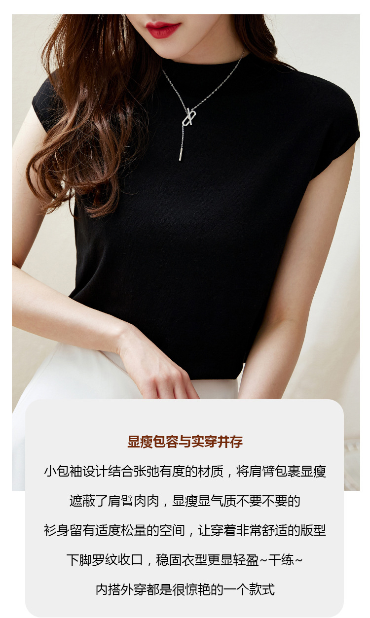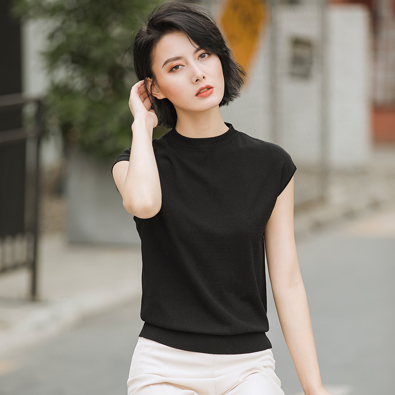 니트 반팔 여름 얇은 여성용 풀오버 스웨터 Tencel 탑 민소매 슬림핏 슬리밍 베이스 스웨터