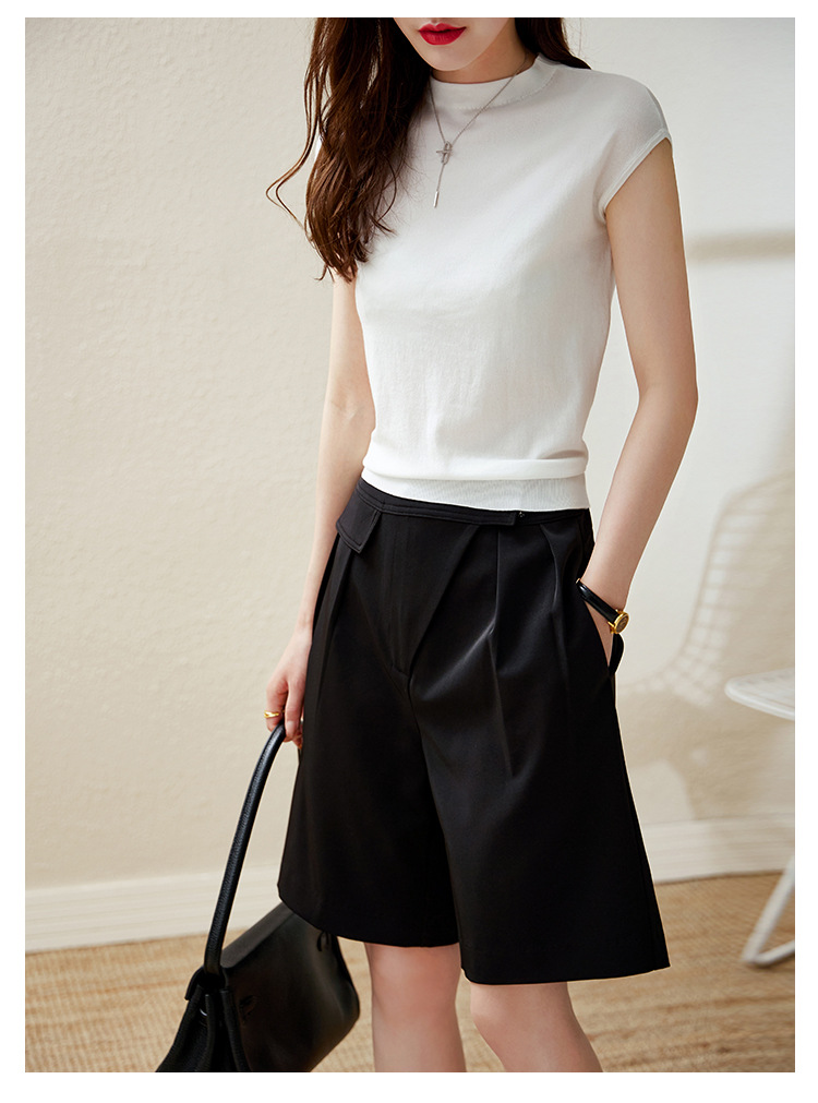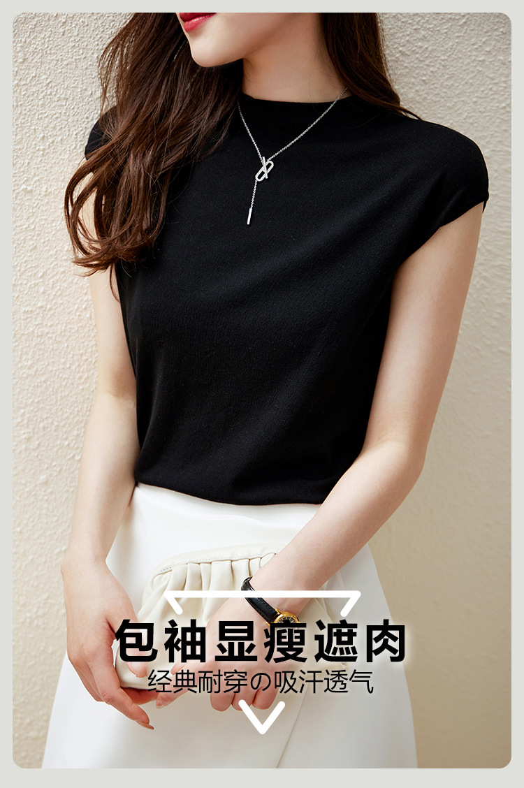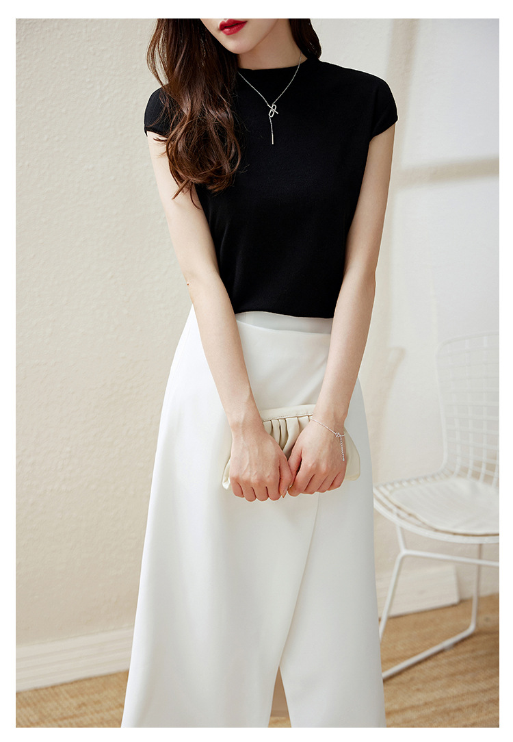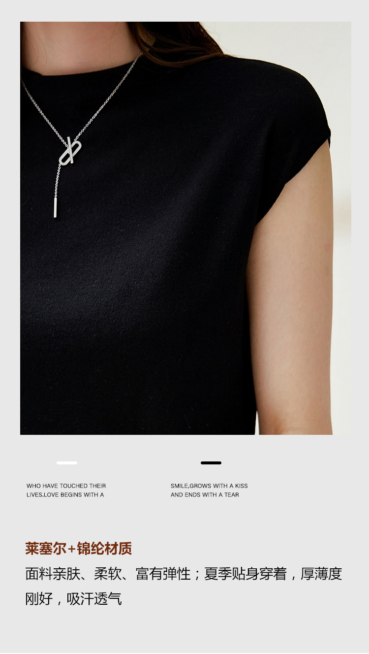 니트 반팔 여름 얇은 여성용 풀오버 스웨터 Tencel 탑 민소매 슬림핏 슬리밍 베이스 스웨터