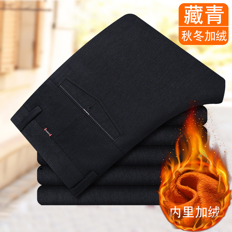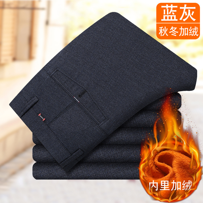 가을과 겨울 기모 두꺼운 캐주얼 바지 남자의 겨울 중년 하이 웨이스트 세트 바지 스트레이트 느슨한 비즈니스 남성 바지스토어 가기