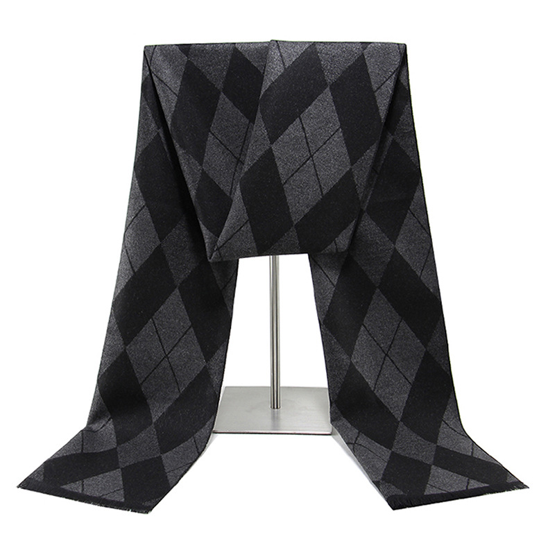 블랙 그레이 남성용 스카프 겨울용 따뜻한 인조 캐시미어 스카프 남성 캐주얼 체크무늬 롱 스카프 제조업체 재고 도매