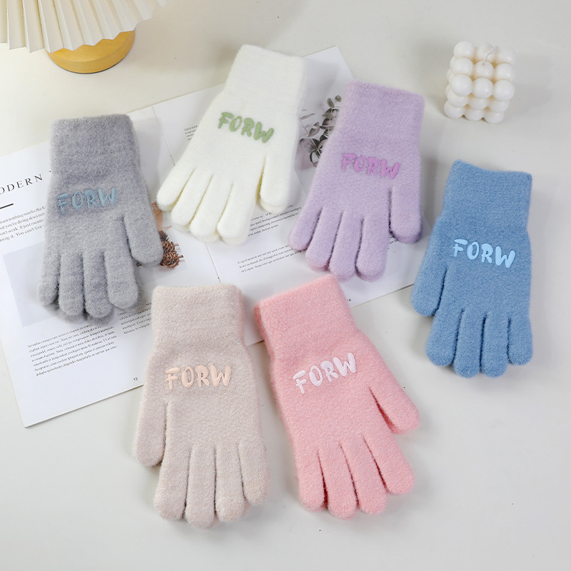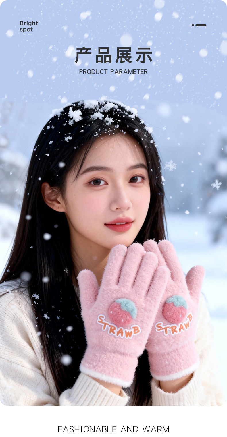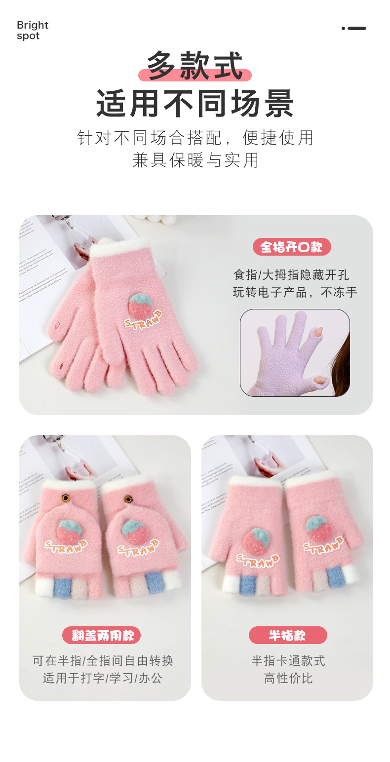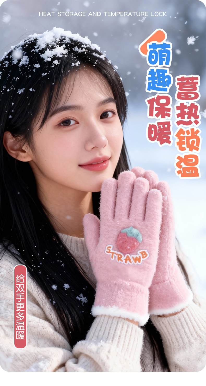루이야 엄선 겨울용 터치스크린 방한 장갑 여성용 귀여운 학생용 다섯 손가락 장갑 겨울 방한 분리형 장갑