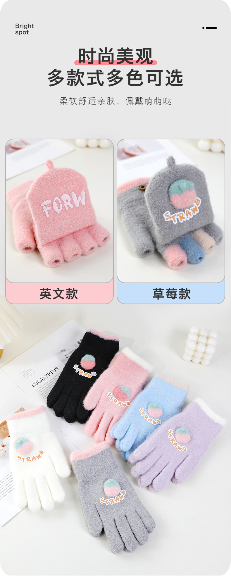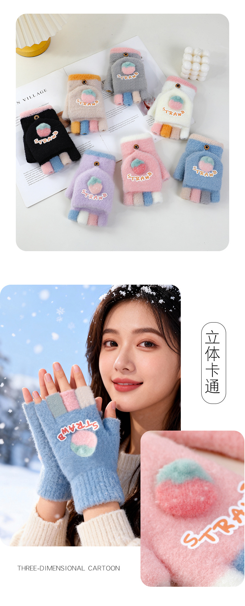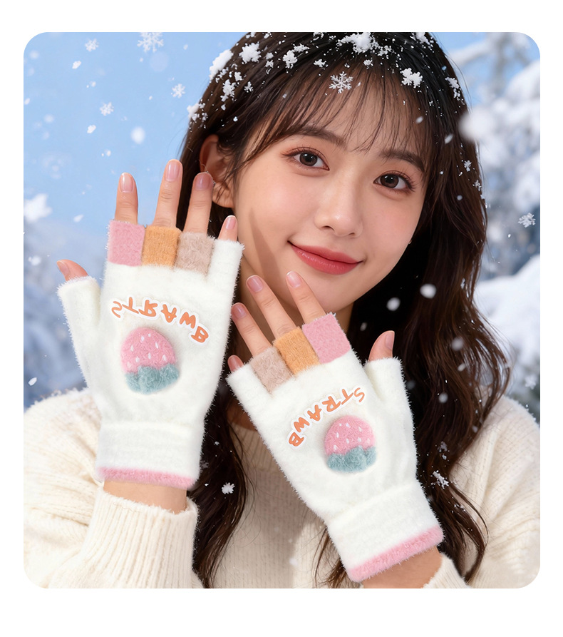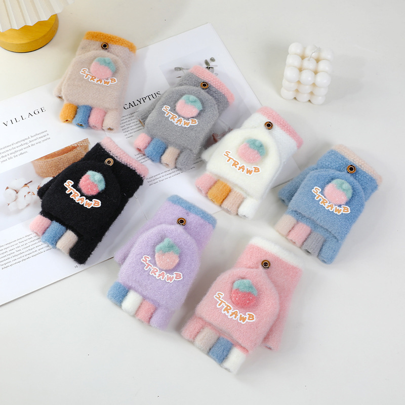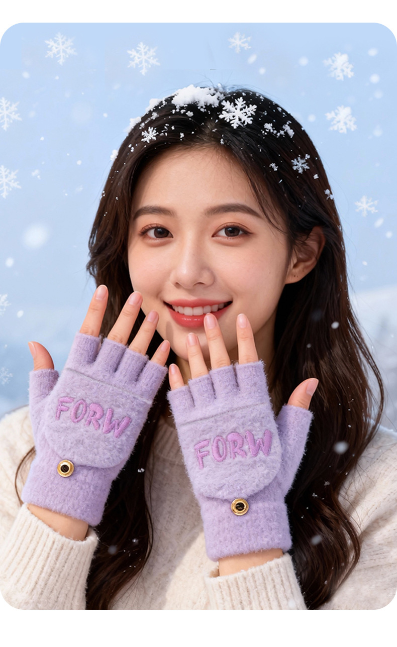 루이야 엄선 겨울용 터치스크린 방한 장갑 여성용 귀여운 학생용 다섯 손가락 장갑 겨울 방한 분리형 장갑
