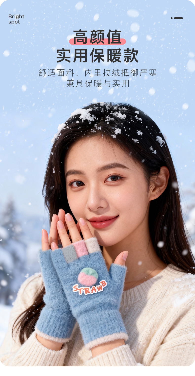 루이야 엄선 겨울용 터치스크린 방한 장갑 여성용 귀여운 학생용 다섯 손가락 장갑 겨울 방한 분리형 장갑스토어 가기