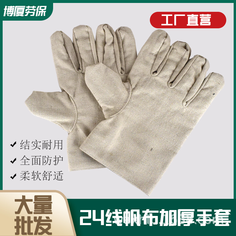 공장 직접 판매 고품질 24 라인 다섯 손가락 캔버스 장갑 단열 및 내마모성 전기 용접 노동 보호 장갑스토어 가기