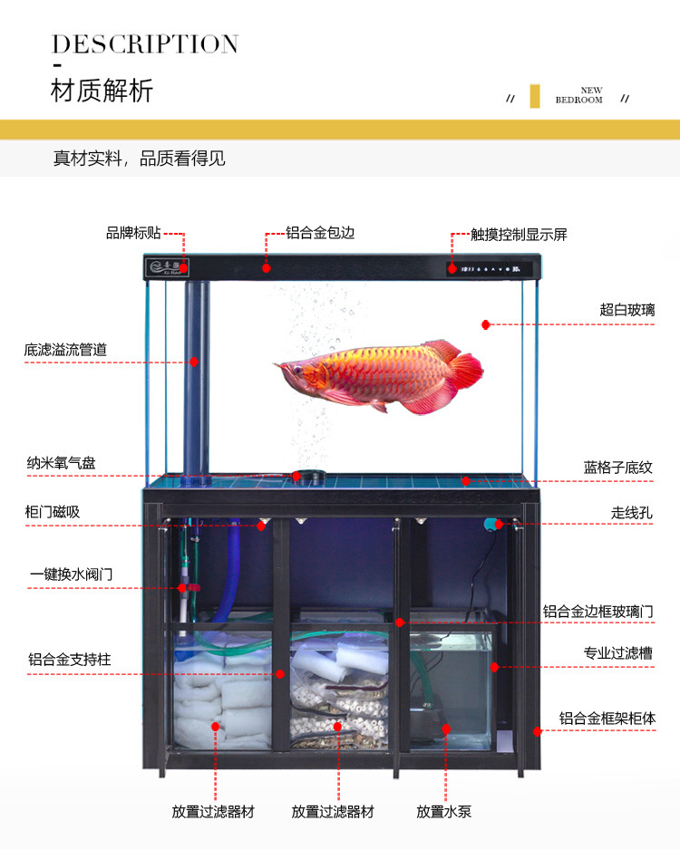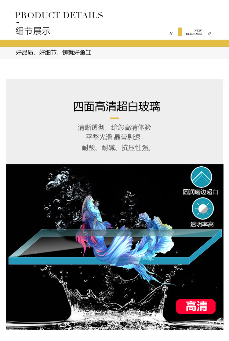 슈퍼 화이트 어항 수족관 거실 바닥 스크린 대형 가정용 소형 물이없는 바닥 필터 조경을위한 금붕어 탱크스토어 가기