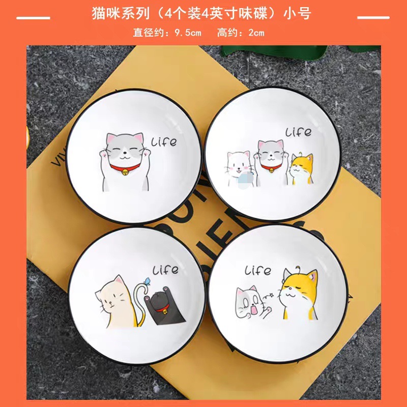 • 귀여운 고양이 양념 접시 B형, 고양이 2마리용 2개