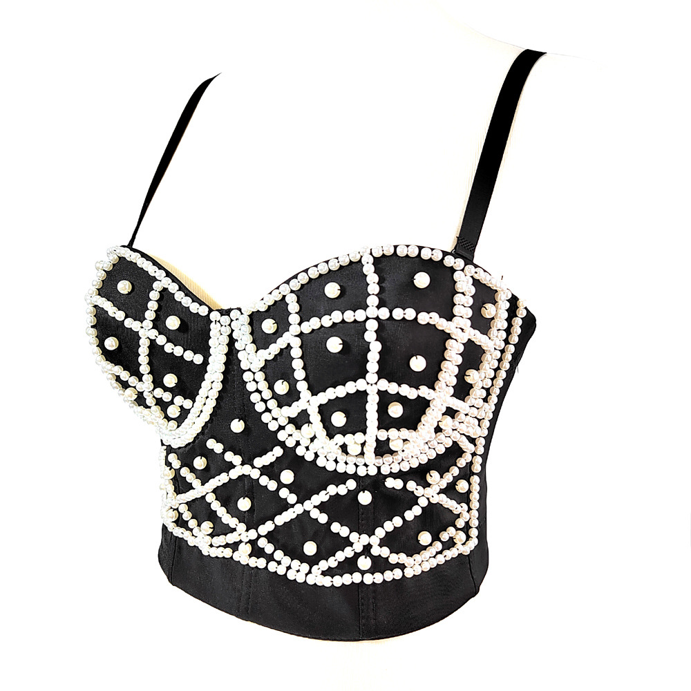 유럽 및 미국 AliExpress 진주 캐미솔 여성용 겉옷 아름다운 등 배꼽 노출 섹시한 짧은 튜브 탑 달콤한 멋진 생선 뼈 탑스토어 가기