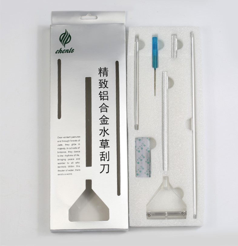 介绍: 本产品可刮除缸壁玻璃上滋生的藻类及钙镁结晶体,也可有效刮除其他污渍,刮刀长度可根据所需要自行调节组合,方便美观,手感比普通不锈钢刮刀更轻盈舒适,且效果更明显。