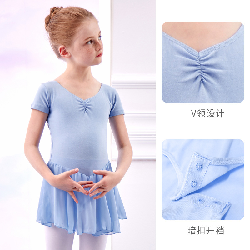 아동 댄스 의상, 여아 연습복, 반팔 여아 거즈 스커트, 중국 댄스 발레 공연 의상, 아동 댄스 의상스토어 가기