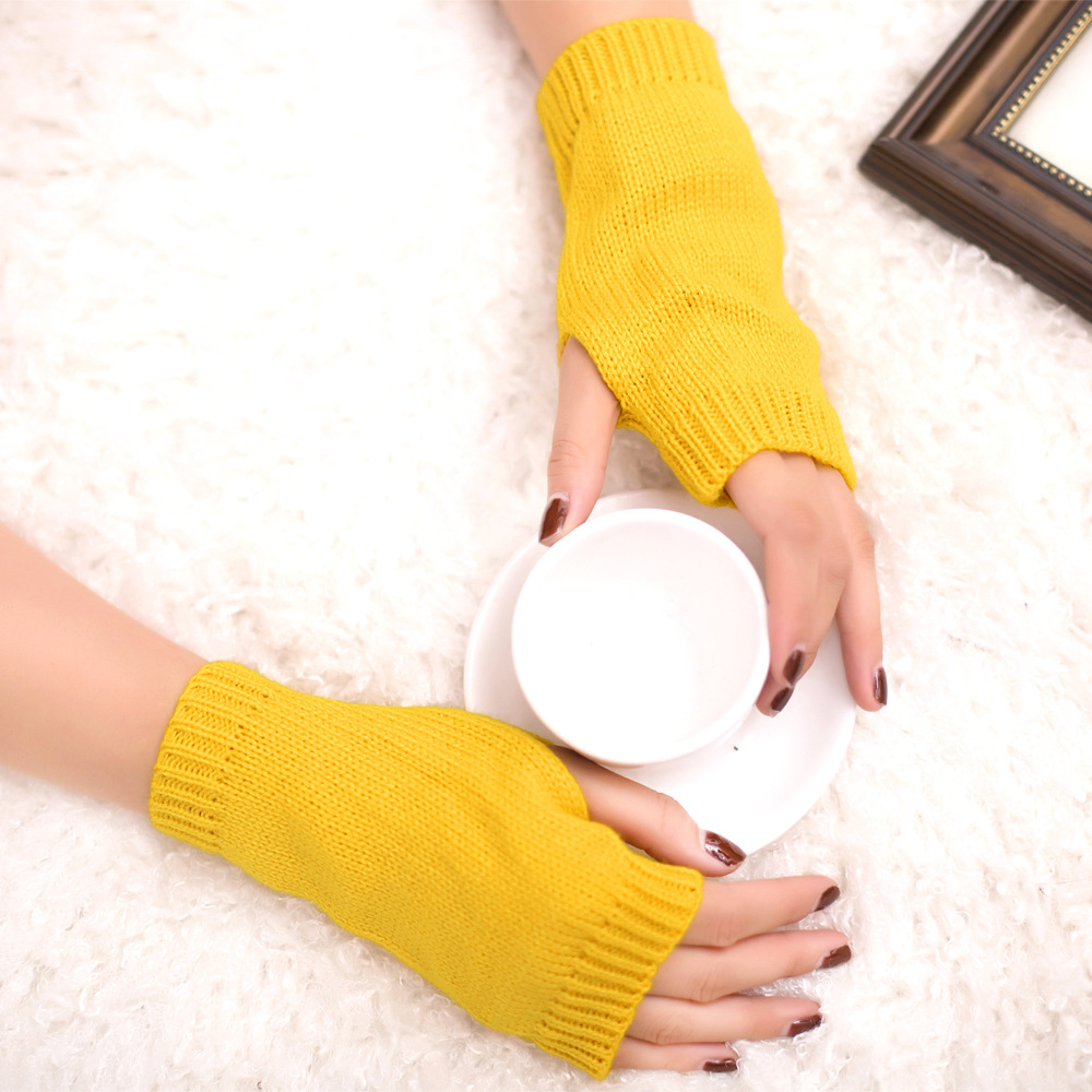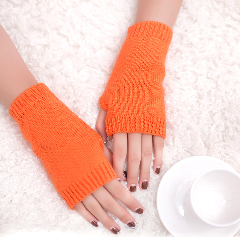 크로스 보더 새로운 양모 두꺼운 따뜻한 장갑 형광 컬러 장갑 캔디 반 손가락 장갑 겨울 각질 제거 장갑