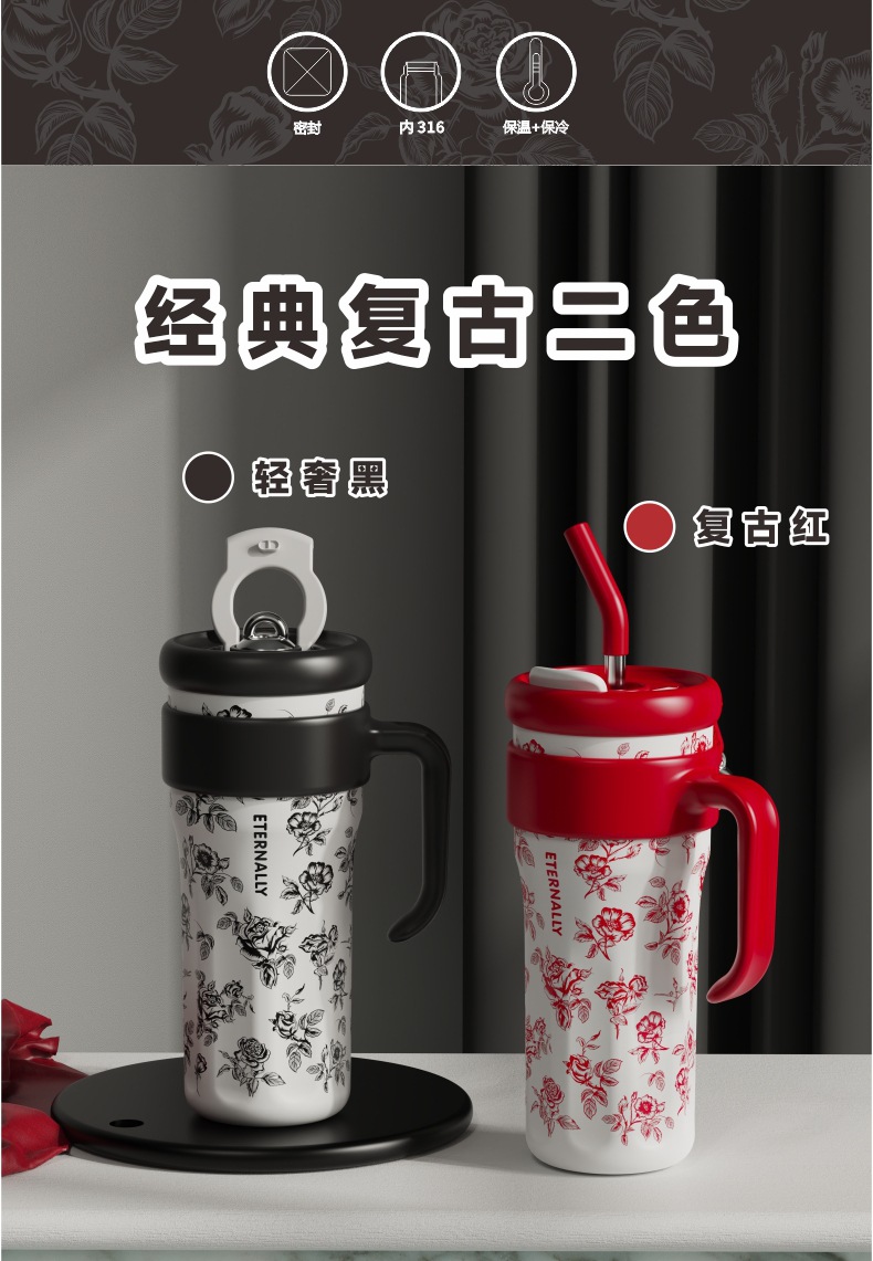 단색 미국 보온병 컵 316 스테인레스 스틸 대용량 커피 컵 홈 오피스 핸들 자동차 sipy 컵